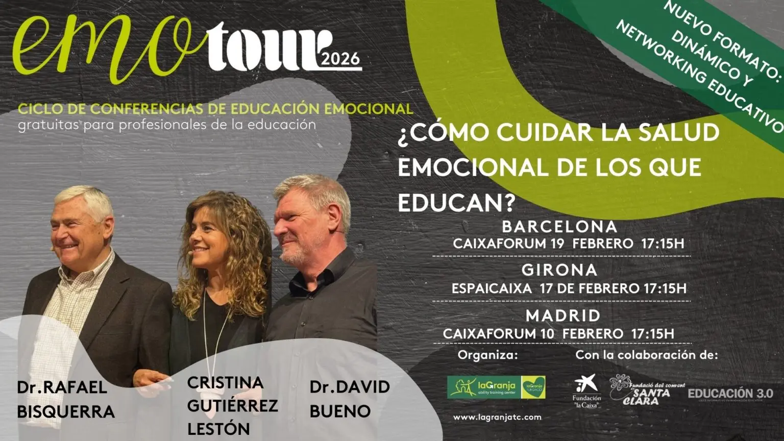 Ciclo gratuito de conferencias sobre educación emocional dirigido a docentes, familias y profesionales del ámbito educativo. El foco está en el bienestar emocional de quienes educan, ofreciendo herramientas prácticas para gestionar el estrés, fortalecer la resiliencia y mejorar el clima educativo.